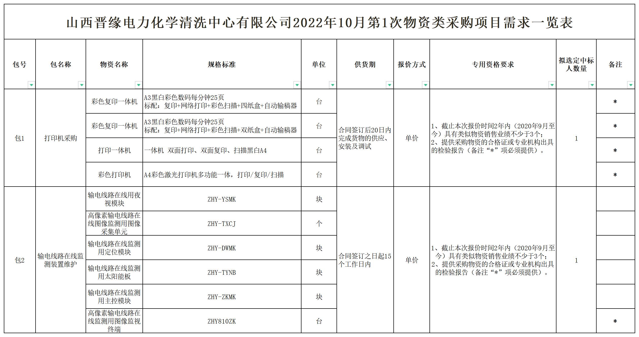 一、项目名称:山西晋缘电力化学清洗中心有限公司2022年10月第1次物资类采购项目